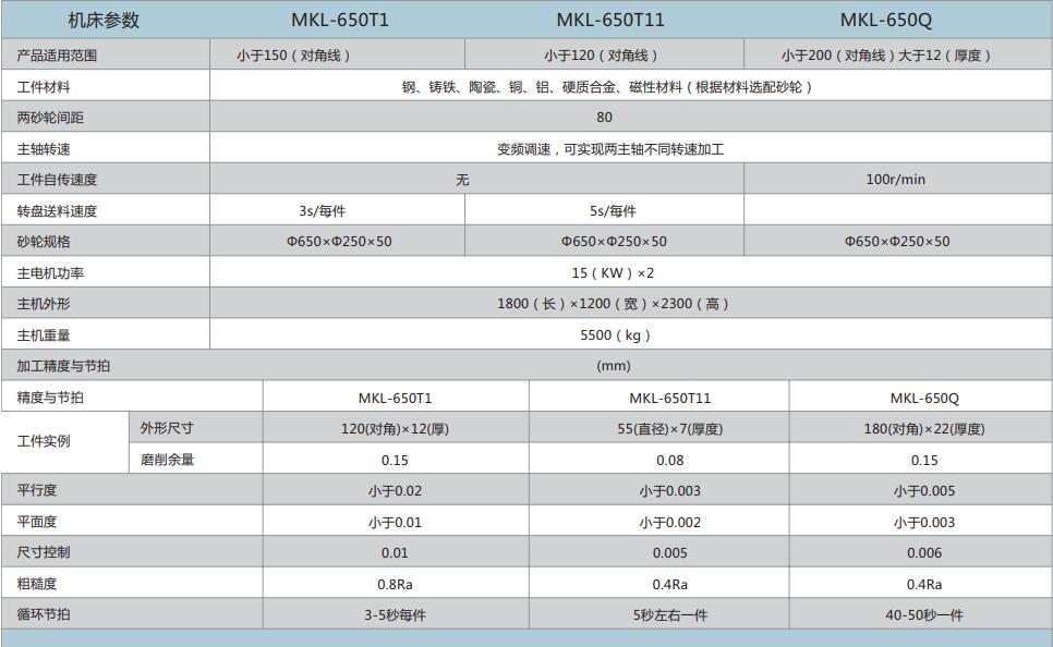 T11型針(zhen)對産(chan)品對(dui)角線(xian)小于(yu)120mm、磨削(xue)餘量(liang)小于(yu) 0.1mm的大(da)批量(liang)精加(jia)工,可(ke)配備(bei)自動(dong)上料(liao)或半(ban)自動(dong)上料(liao)器。 MKL-650Q型(xing)針對(dui)産品(pin)對角(jiao)線小(xiao)于200mm、産(chan)品厚(hou)度大(da)于12mm的(de)批量(liang)高精(jing)加工(gong),人工(gong)上下(xia)料。